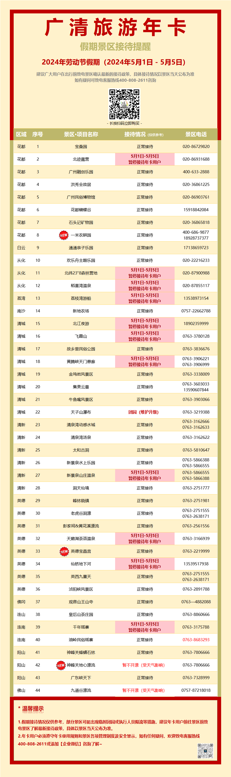 【五一假期年卡可用景点】