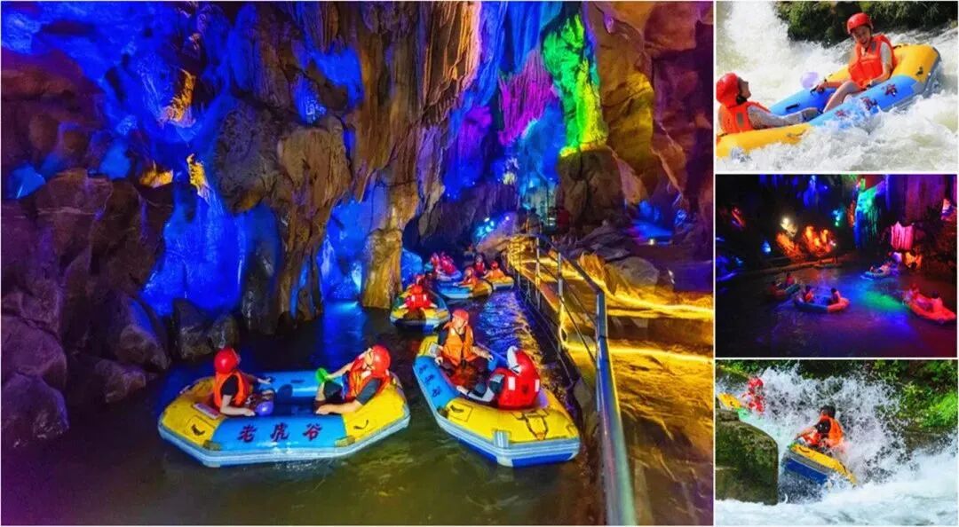 ▲老虎谷洞漂,穿越岩洞的暗河漂流