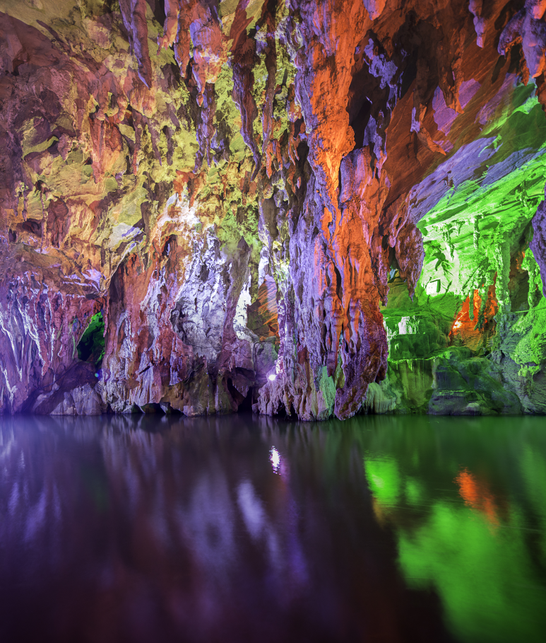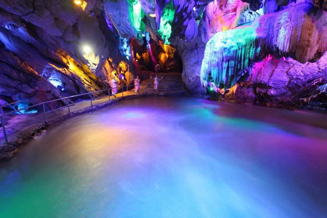 ▲仙桥地下河,华南地区罕见的全程游船的溶洞类景区