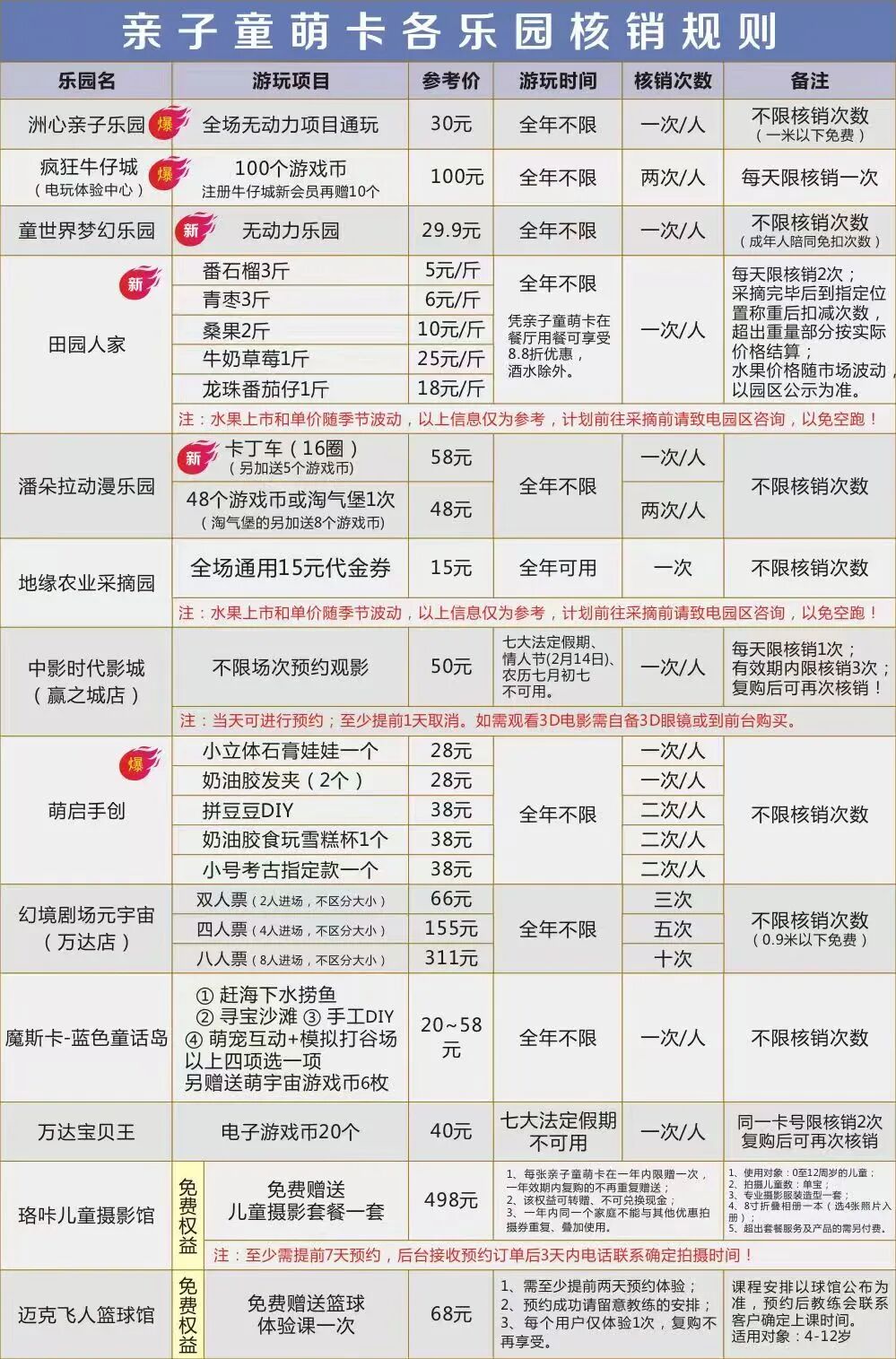 亲子卡每卡每年138元,享受10次核销权益,自购买之日起365天有效,2024年可进入多家清远市区游乐园游玩。