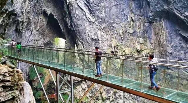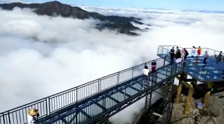 玻璃观景廊桥悬空建在悬崖绝壁上