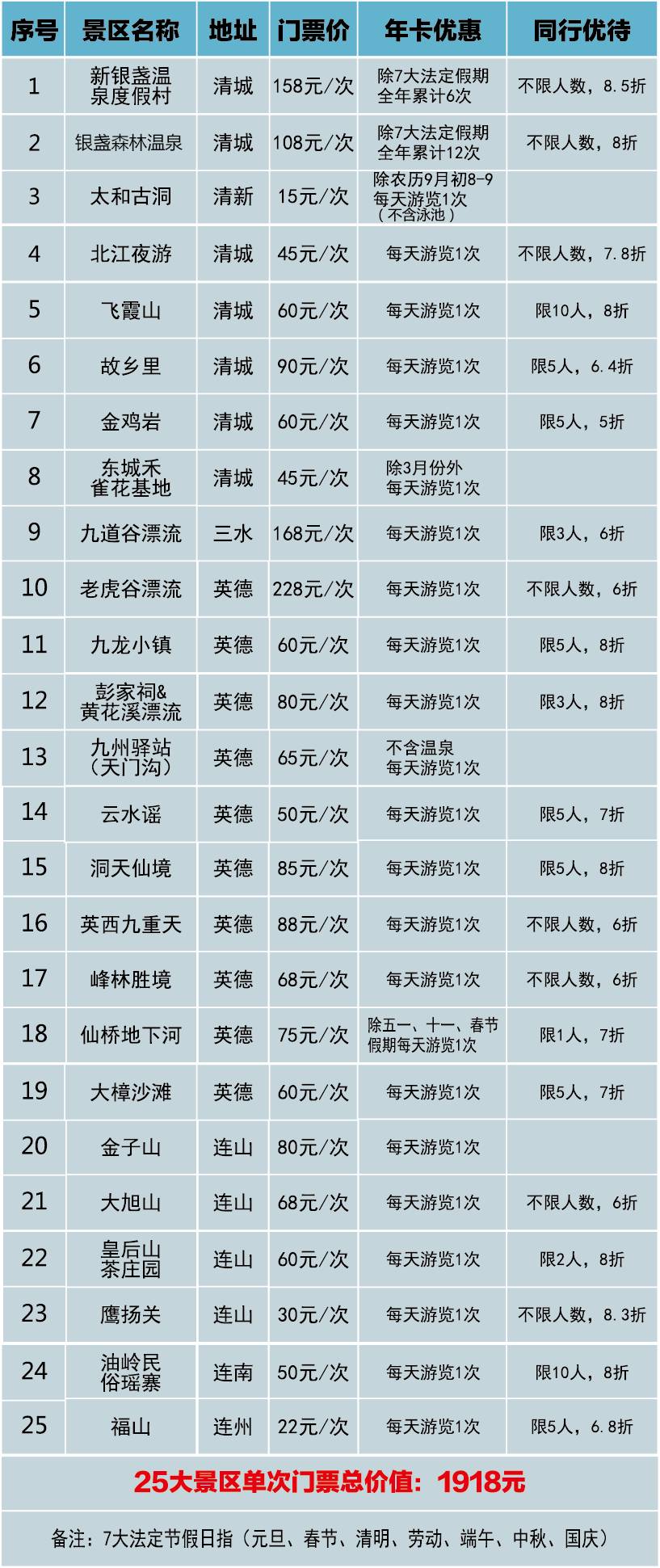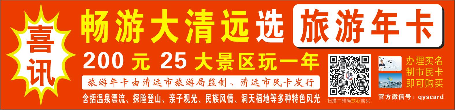 (温馨提示:清远旅游年卡,200元25个景点玩一年)