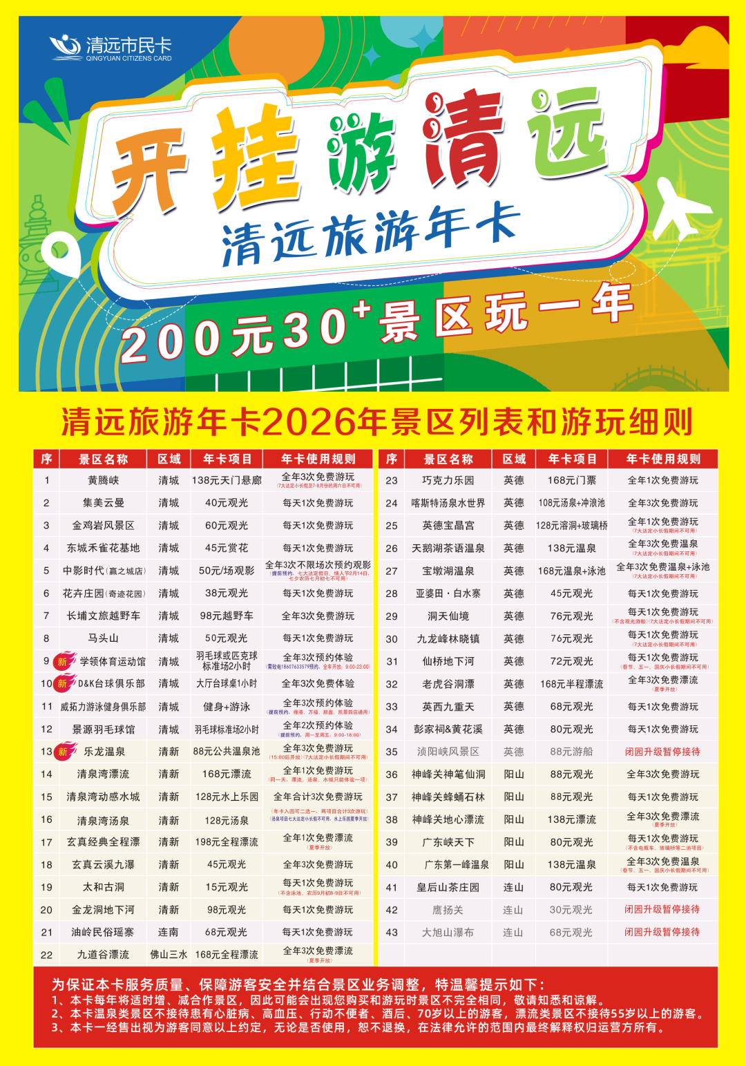 清远旅游年卡使用规则: