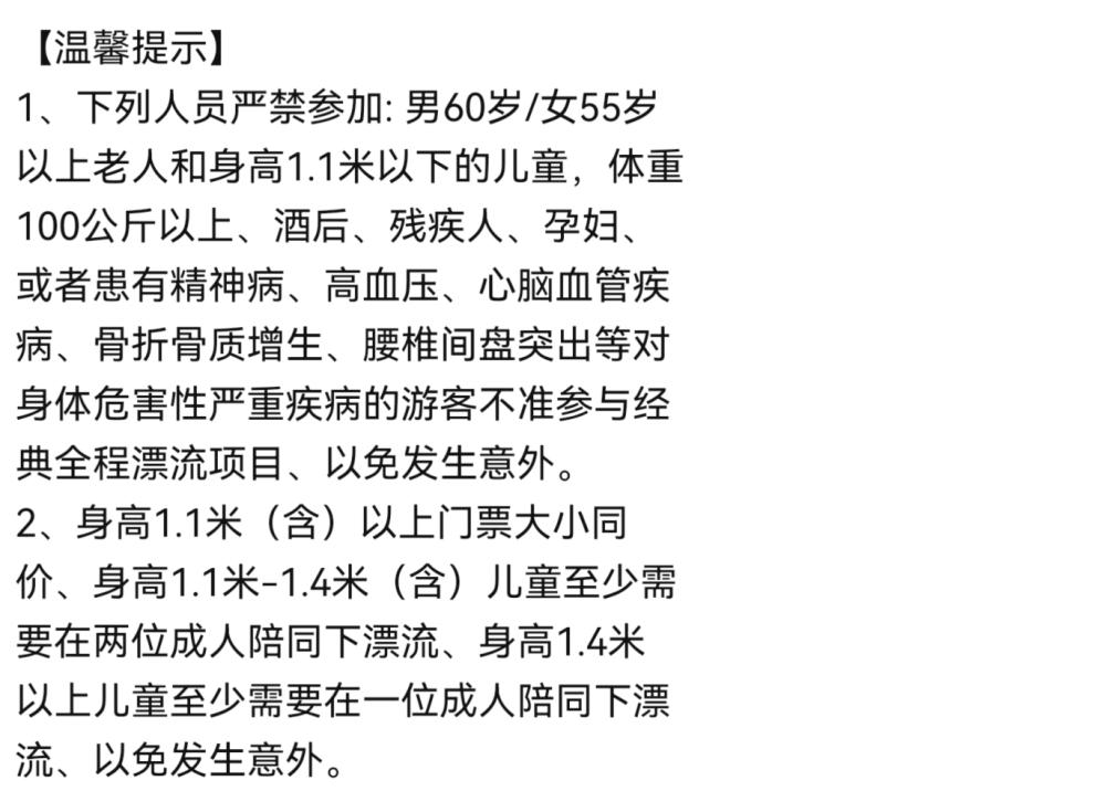 儿童身高1.1米以上可以游玩,并必须由成年陪同才可以漂流。