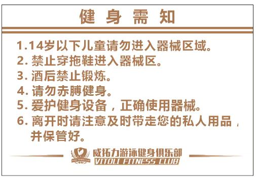 ● 健身需穿着运动鞋,禁止穿拖鞋进入器械区.